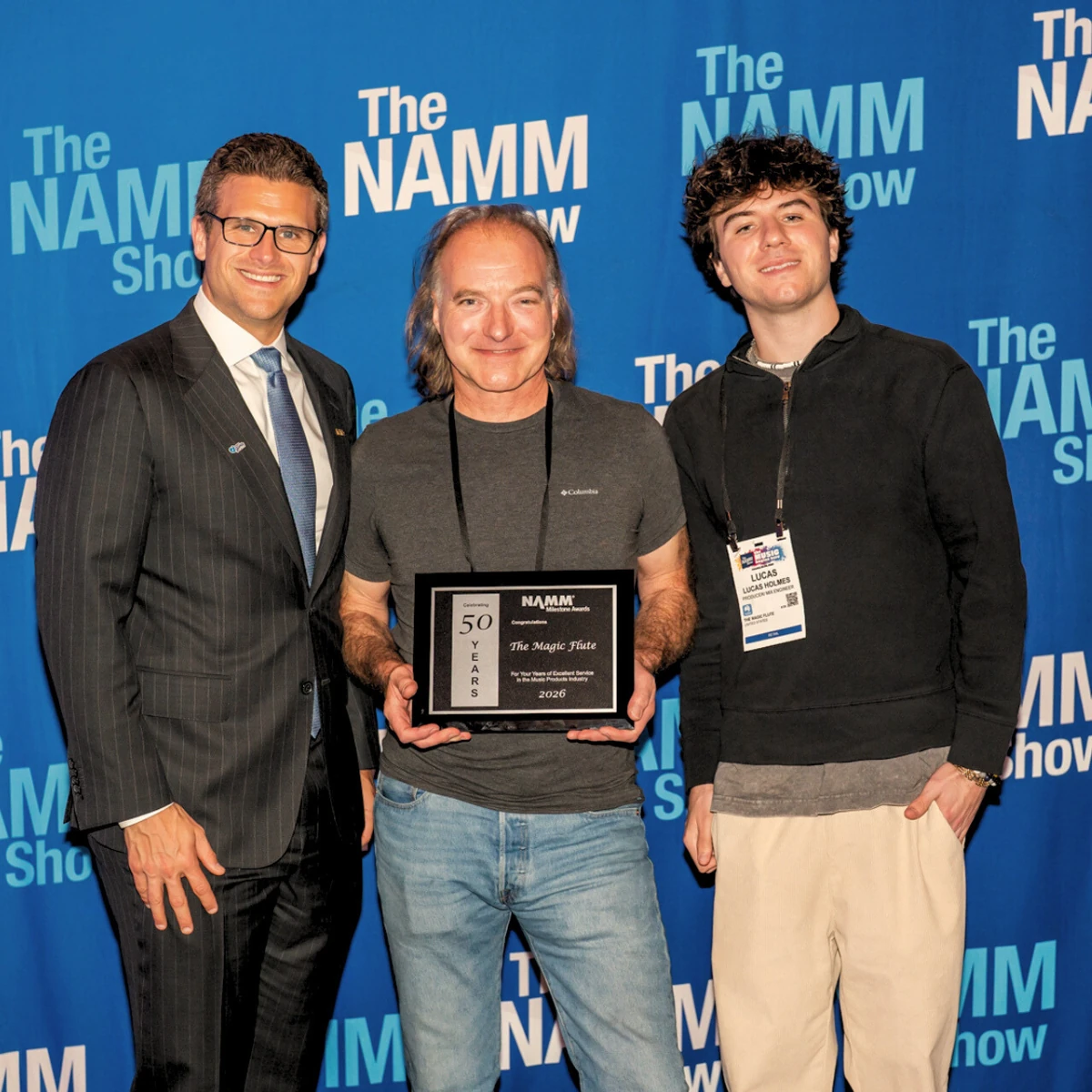 This year, 2026, we were honored to receive special recognition at NAMM (National Association of Music Manufacturers) for our 50 years in business. But, we were even MORE honored to have Tom Holmes and his son Lucas accept the award on our behalf, pictured here with NAMM's President and CEO John Mlynczak.