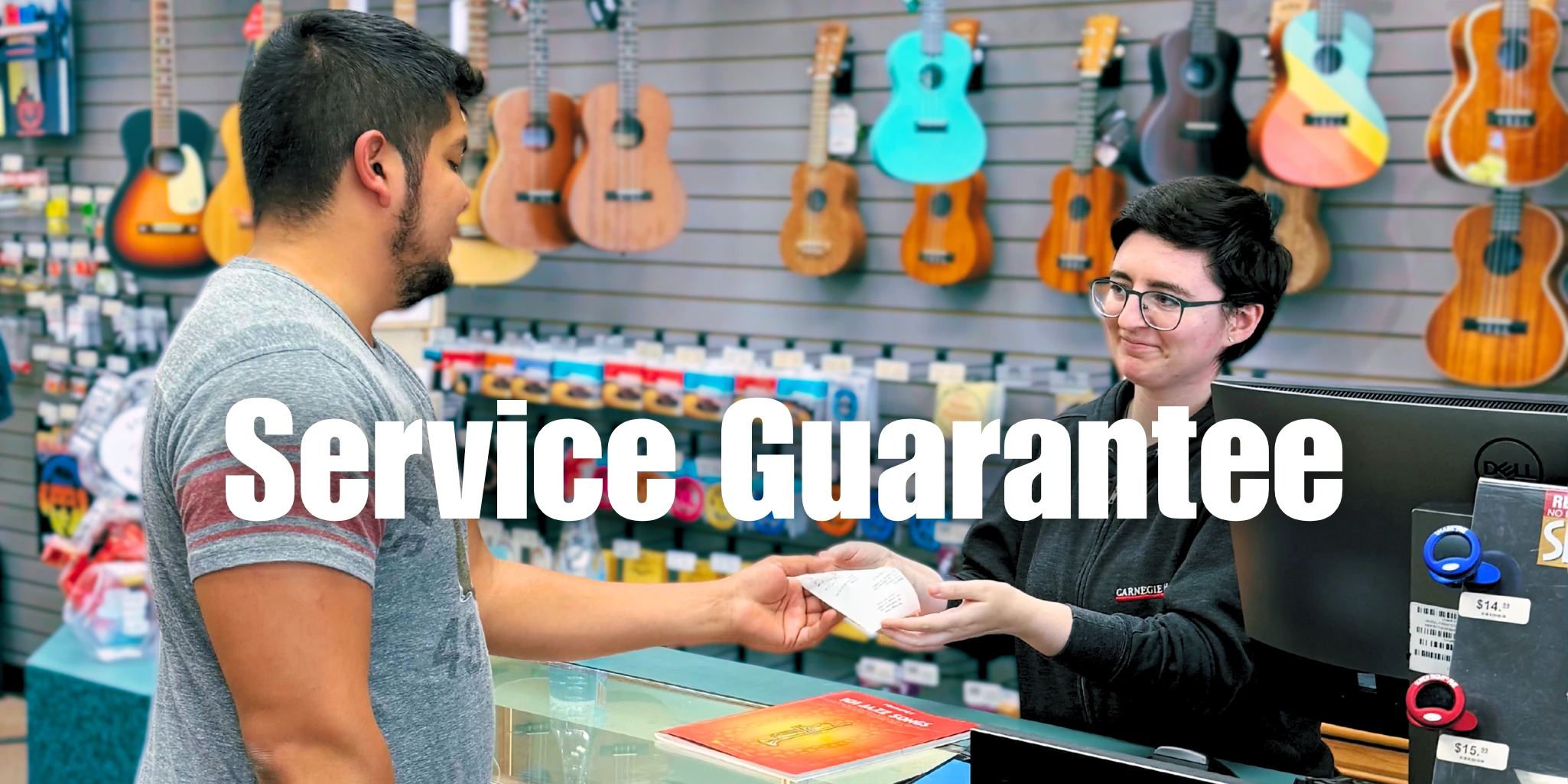 Your satisfaction and experience matter to us. Our service policy helps maintain your instrument’s performance, ensuring it sounds and plays its best at all times. Any instrument, new or used, that you purchase from us comes with a 1-Year Service Guarantee.