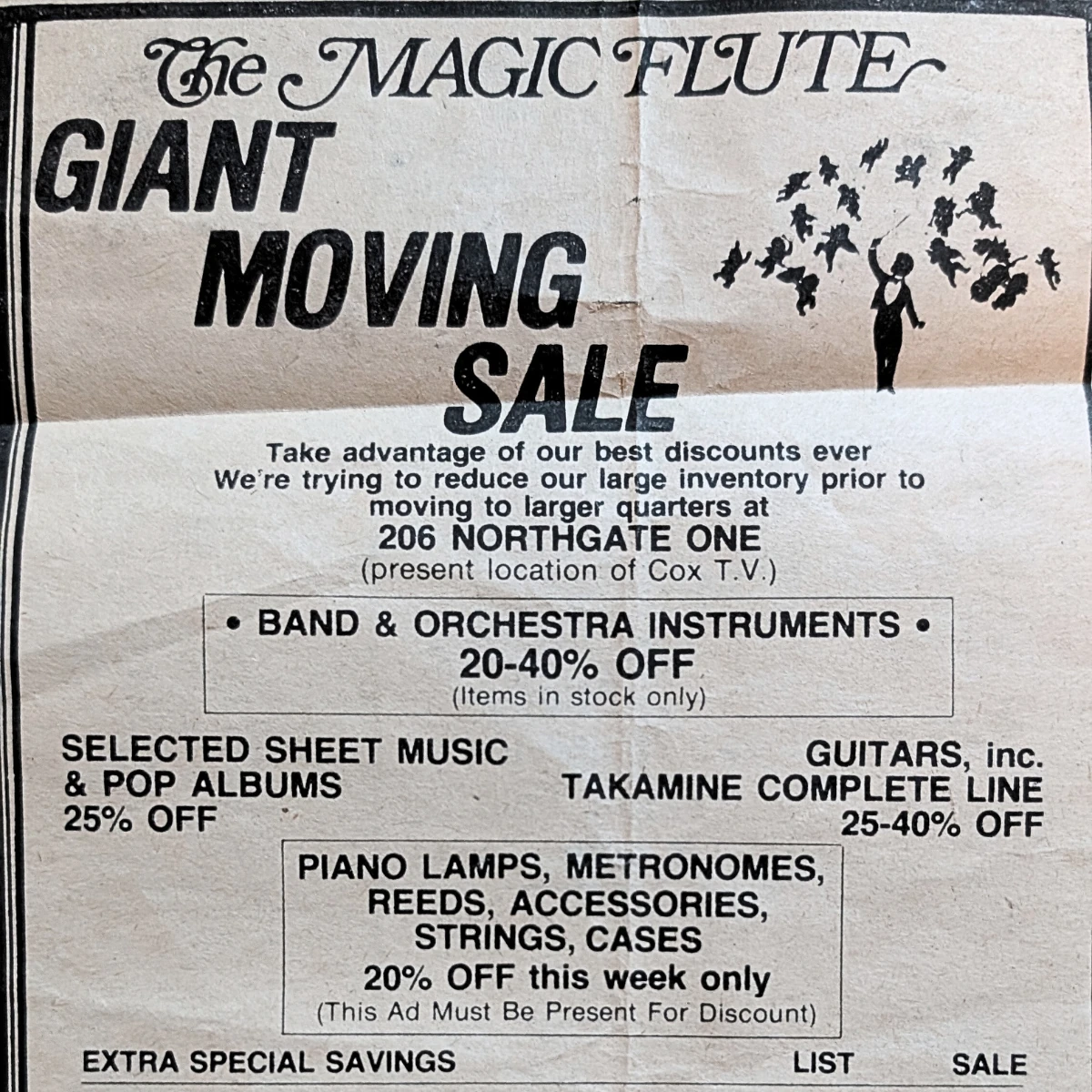 In 1976 Mike bought the store from B&G Music while in its original location near Scotty's market. To expand the business, he moved the store in 1978 to its first of two locations in Northgate One.